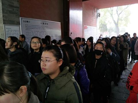 同学们有序地排队检票进入避暑山庄