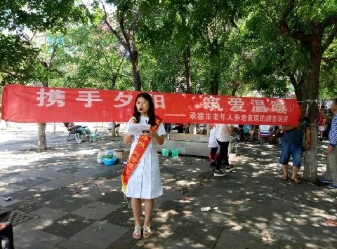 作为新时代的大学生,为深入了解承德市养老现状和老人们养老意愿,我校护理学院“初之朝阳”暑期社会实践团于2017年7月7日至7月12日在承德市开展以“携手夕阳 共筑温暖”为主题的暑期社会实践活动。“初之朝阳”实践团队全体团员参加了此次活动。
