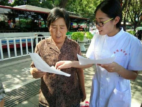 第二站团队来到了承德市中心广场,以咨询解答、爱心义讲的形式,向社区老年人普及了各类夏季传染病,并发放了“夏季老人年高危疾病预防”宣传单。志愿者们以耐心的讲解、丰富的知识向居民送去了宝贵的建议与预防措施,受到了广场老年人的一致好评。炎热的天气没有阻挡队员们的热情,她们的热情感染着身边的每一个人。