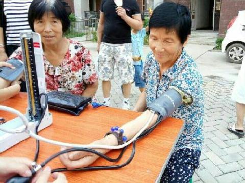 队员为老人测量血压