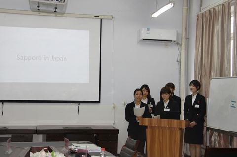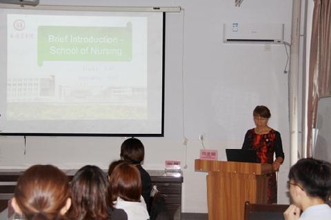 4日下午,札幌市立大学师生一行与护理学院师生进行学术交流。首先由田建丽院长致欢迎词并为来访师生介绍护理学院概况。雷慧教授就中国医疗保险模式做专题讲座。札幌市立大学学生介绍该校情况。双方师生围绕课程设置、大学学习、生活等方面进行了交流互动。