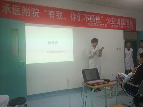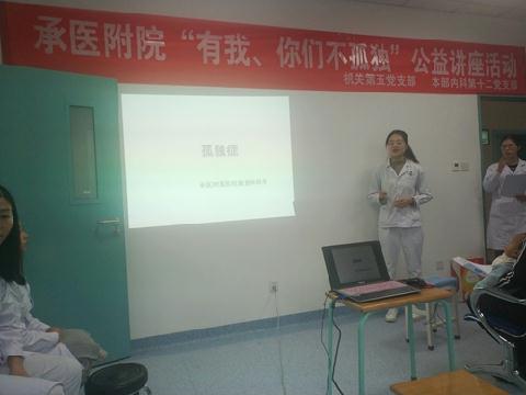 为普及自闭症相关知识,让更多的人了解这些“星星的孩子”们的内心世界并掌握基础的康复训练方法,2018年11月15日上午,我校生物医学工程直属党支部、承德医学院附属医院机关第五党支部及本部内科第十二党支部、承德医学院附属医院康复医学科联合开展了以“有我,你们不孤单”为主题的系列活动。
