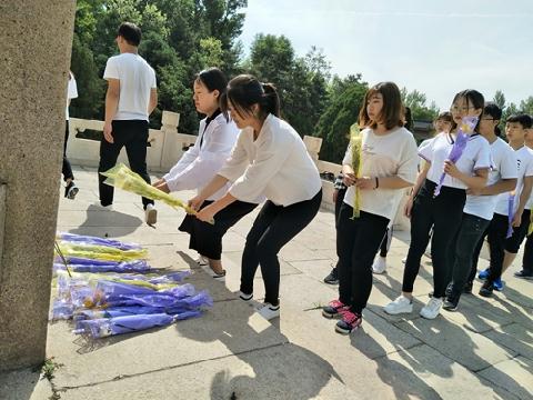 师生排队献花