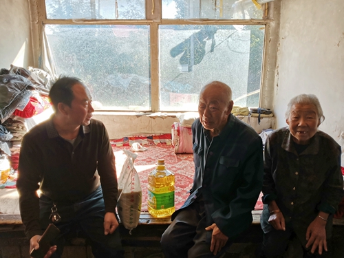 赵连志亲切地和老人们坐在一起聊家常,询问老人的生活情况和身体情况,和老人们畅谈今年国庆的盛况,分享祖国强大的喜悦,并亲手送上慰问品。同时向老人们介绍各级政府的扶贫政策和宽沟村脱贫攻坚的情况,老人们认真地倾听,并不时地发出喜悦的笑声。他们纷纷表示:“强大国家,使我们生活稳定;惠民政策,使我们日子越过越富裕;驻村工作队的关心,使我们感到满意和舒心!”。