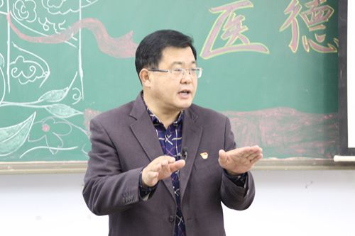 作为时代新青年,应该响应党中央号召,紧跟时代步伐,传承红色基因,牢记医学生的初心与使命,为此基础医学院2018级麻醉学第二团支部于2019年11月12日在教学楼109教室举办以“仁爱医德,爱岗敬业”为主题的系列团日活动。出席本次活动的有河北省服务业标准化专家、承德市避暑山庄管理处旅游管理科吕秀军科长,承德医学院党委宣传部部长于多珠,基础医学院2018级麻醉影像康复专业辅导员付俊贞老师,基础医学院2018级麻醉影像康复专业辅导员于淼老师。基础医学院2018级麻醉影像康复专业全体学生参加了此次活动,承德市广播电视台全程跟随记录。