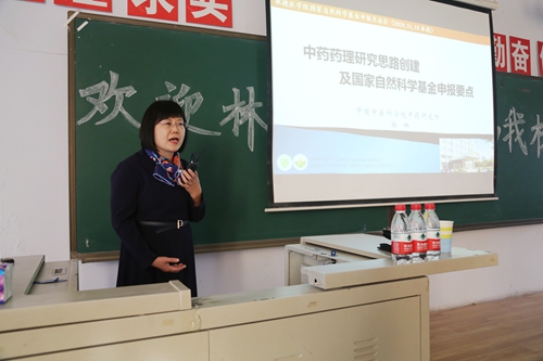为深入贯彻落实“不忘初心,牢记使命”主题教育要求,进一步推进我校科研工作开展,2019年11月15日,中药研究所邀请中国中医科学院首席研究员林娜教授,为我校师生作《中药药理研究思路创建及国家自然科学基金申报要点》主题报告。副校长翟玉建参加并主持报告会,我校教师、研究生、本科生聆听报告。
