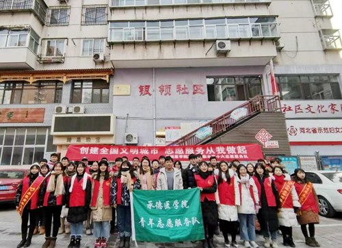秉承着提高城市品质,提升市民责任和素养,营造好的城市文化氛围,推动精神文明建设发展的宗旨,创建全国文明城市的活动在承德市如火如荼的开展着。为迎接我市文明城市测评,该服务队志愿者纷纷行动起来,用实际行动为承德市创建全国文明城市注入青春力量。为此,该志愿服务队举办“创建全国文明城市,志愿服务从我做起”为主题的志愿者活动。承德市共青团双桥区委、双桥区青年中心副主任连增新、银领社区书记王楠、承德市共青团双桥区委李宇航、基础医学院2017级辅导员老师计艳楠及志愿队全体人员参加此次活动。