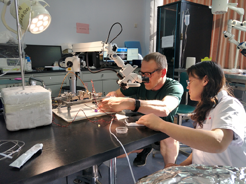Jacob Wienecke教授和任立群老师进行电生理实验