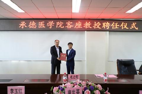 聘任仪式上,副校长张凯介绍了参会的人员、毛之奇主任医师的学习工作经历及取得的业绩成果;校长唐世英介绍了学校的发展历史及取得的可喜成绩,并对毛之奇主任医师来我校开展神经领域的科研合作表示了热烈欢迎;毛之奇主任医师在表态发言中也表达对承德医学院深厚的历史底蕴,红色的革命基因的赞叹,也表示未来将致力于承德医学院发展贡献自己的力量的决心。