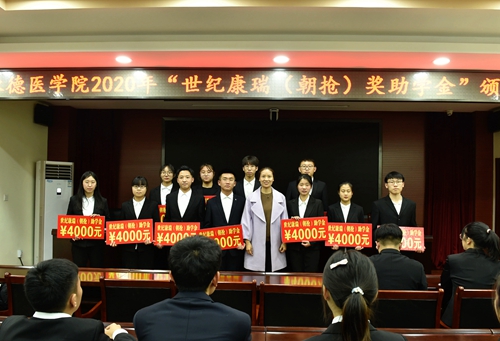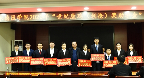 2020年11月20日,我校在行政楼412会议室举办2020年度“世纪康瑞(朝抢)奖助学金”颁奖仪式。校长唐世英,北京朝阳急诊抢救中心院长谢洪峰、书记林冲、副院长杨莉、行政部牛吉茹出席,学生处处长张文军主持。