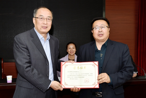 校长唐世英为资助方颁发捐赠证书