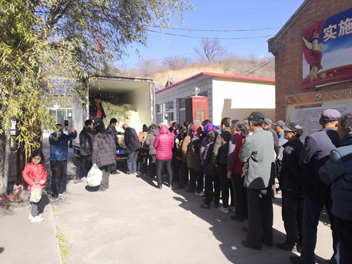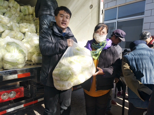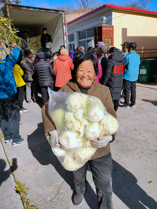 村民领到暖心白菜喜悦的心情