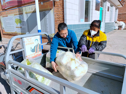 丰宁御今农业集团股份有限公司董事长孙志伟为村为发放白菜