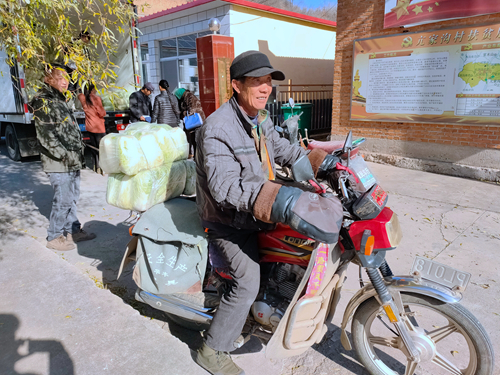 企业领导、驻村干部及村两委成员将企业捐赠的暖心大白菜发放给全村村民,并鼓励他们努力向上,把日子过得越来越好。
