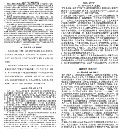 今年4月15日是我国第五个全民国家安全教育日。为贯彻落实习近平总书记重要指示精神,提高全体学生的国家安全法治意识,营造维护国家安全的浓厚氛围,增强防范和抵御安全风险能力,为打赢疫情防控阻击战、决胜全面建成小康社会提供坚强保障,中药学系于4月8日开始,组织开展了为期一周的2020年全民国家安全教育日系列宣传教育活动。