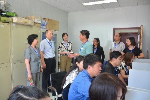 党委书记盛婉玉、校长唐世英、副校长李玉红在阅档现场了解生源情况