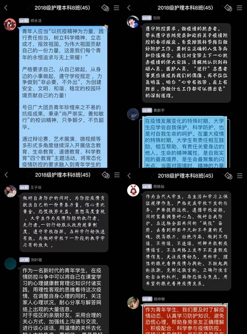 为充分发挥青年生力军和突击队的作用,坚决打赢疫情防控歼灭战,进一步增强学生自我防护意识,引导学生做好居家疫情防控工作,护理系2018级护理学本科第八志愿服务队于2021年1月22日—28日开展了“凝聚青春正能量,众志成城抗疫情”主题志愿服务活动。