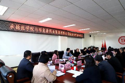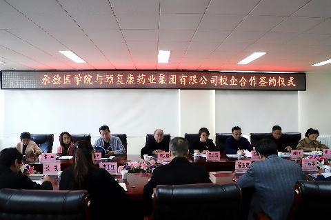 双方领导进行了现场签约、授牌仪式。唐世英与李沈明签署了《校企合作框架协议》,并互相授予了“承德医学院战略合作单位”、“颈复康药业集团有限公司校企合作院校”牌匾。张凯与王轶超签署了《“颈复康药业英才奖学金”协议》。双方领导还就签约的相关内容进行了深入合作洽谈。