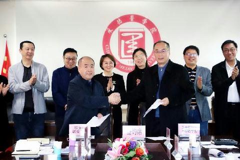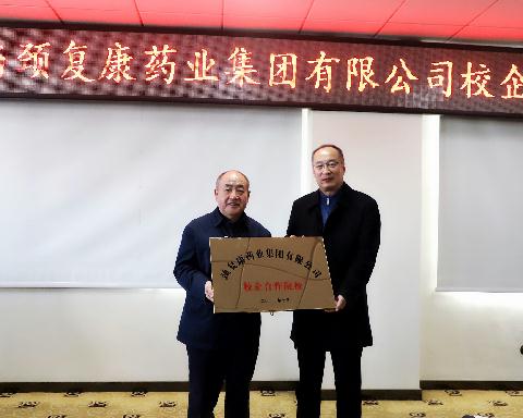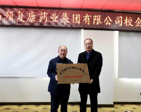 我校校长唐世英与颈复康药业集团董事长、总经理李沈明签署《校企合作框架协议》