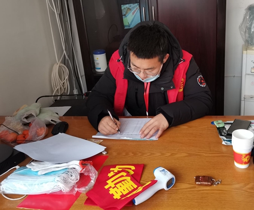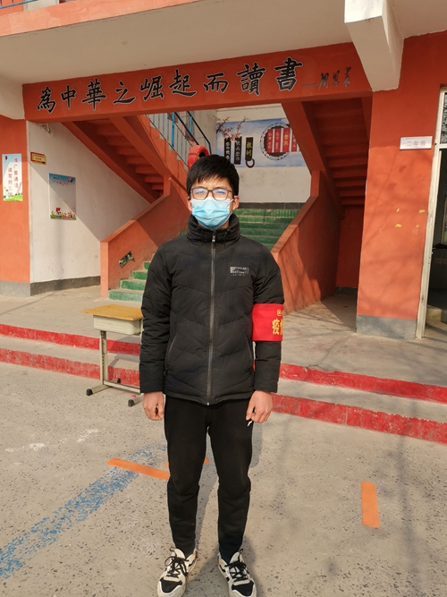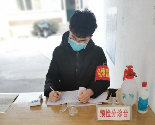 河北省邯郸市武安市的韩锦波同学主动参加志愿服务,在河北省邯郸市武安市上团城乡下团城村卫生院门口执勤,为疫情贡献自己的力量。1月16日至今每天坚持在卫生院门口对进入的人员进行体温监测,从不懈怠。在上岗期间他每天都坚持按时到岗。韩锦波同学说,作为当代青年,定应不辱使命,为这次疫情奉献出自己的微薄之力,相信中国一定能打赢这场战“疫”。