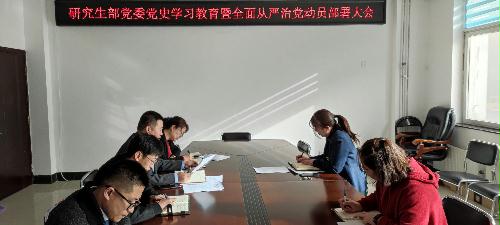 苗光新传达了学校党委关于党史学习教育相关会议的精神,对研究生部党委党史学习教育进行了动员部署,强调了党史学习教育的重要性,对开展专题学习、加强宣传教育、组织专题培训、开展“我为群众办实事”实践活动、召开专题组织生活会等5个方面做了详细的安排,成立了党史学习教育领导小组和办公室,组织了党员干部专题培训暨党史学习读书班,将党史学习与红医精神相结合。随后传达学习了学校全面从严治党工作会议精神,加强党规党纪学习,提高政治素养。