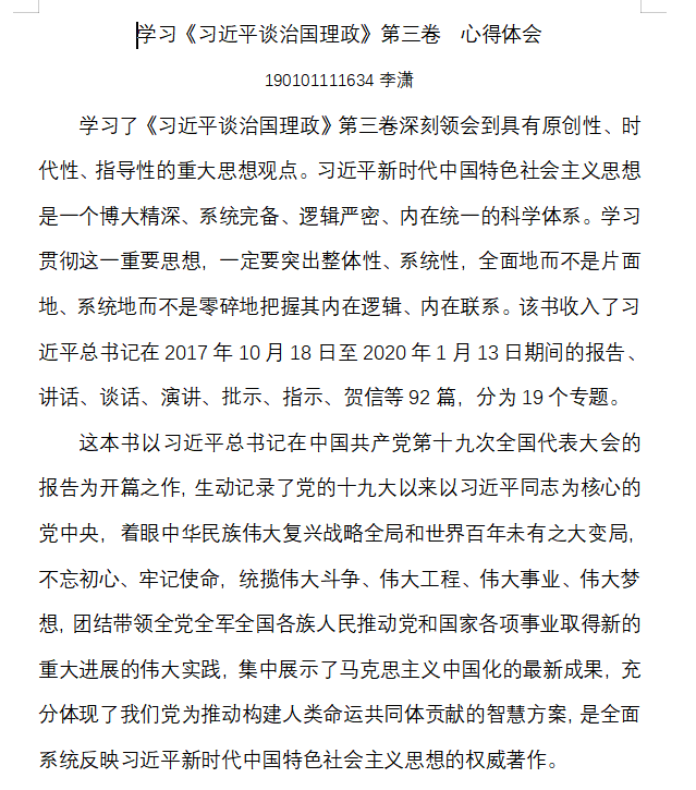 活动期间,同学们充分利用线上远程平台与信息资源库,查询相关资料,深入开展学习交流活动,并通过撰写文章深入体会思考,努力将《习近平谈治国理政》第三卷这一最权威、最系统、最鲜活的原著原典运用到实践当中。同学们一致表示,要继续坚持以习近平新时代中国特色社会主义思想为指导,将思想理论运用到学习、生活中去,不断武装自己头脑、丰富自身阅历,增强自身能力,用实际行动为蜕变成一名合格的医生奠基。