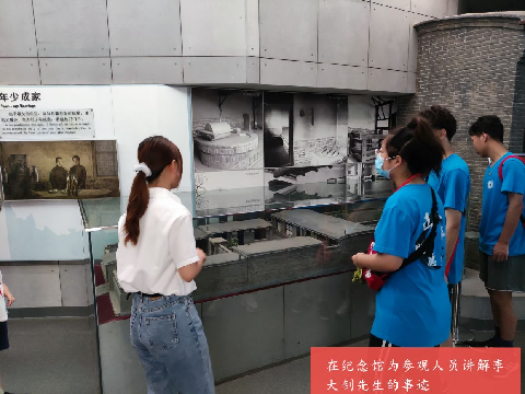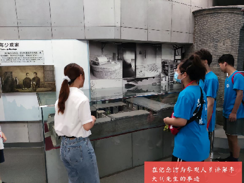 参观李大钊纪念馆,讲解李大钊先生伟大精神,追寻革命之旅。团队成员经过培训后,于7月15日上午进入纪念馆,作为讲解志愿者带领参观者进行学习。纪念馆分为三个展厅,九个专题,讲解员们按照历史时间顺序详细描述李大钊先生的光辉事迹。为河北水利电力学院实践团成员进行讲解。讲解过程,到访游客也纷纷加入其中,与团队成员一起更加深刻地感受李大钊先生博学多才、胸怀天下、心系国家、舍生忘死的英雄形象。