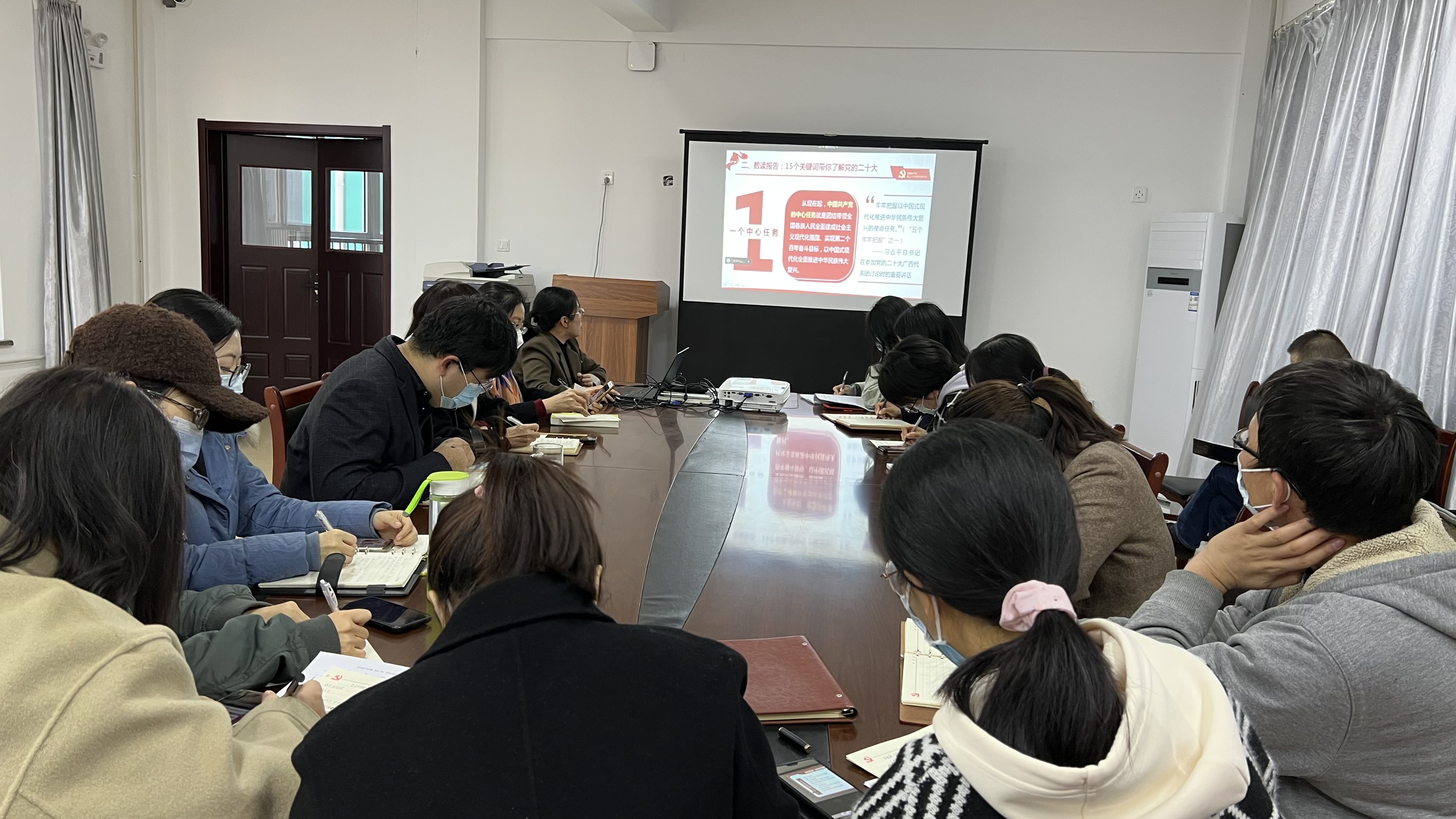 系党总支副书记张静敏以“思想伟力领航向 擎画复兴新蓝图”为主题,分“继往开来:处于关键历史关口的一次重要大会”“数读报告:15个关键词带你了解党的二十大”“擘画蓝图:以中国式现代化全面推进中华民族伟大复兴”三个部分进行专题领学,并结合自身经历,回忆入党初心,分享学习收获。