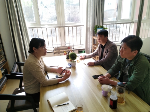 科技处处长任立群与生物医学工程系主任许士奇、河北英曼卡科技有限公司总经理王航洽谈交流合作