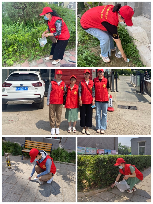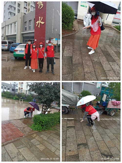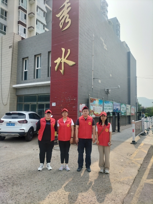 6月20日下午,公共教学教辅党委吴新晖、张燕霞、徐姗姗、陈娜在秀水花园小区开展志愿服务