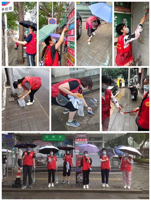 6月22日下午,研究生学院庞健、王婧、祖思源,蚕业研究所卢阳、王敬、李娜在双柳街志愿服务