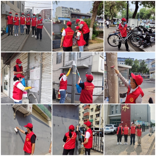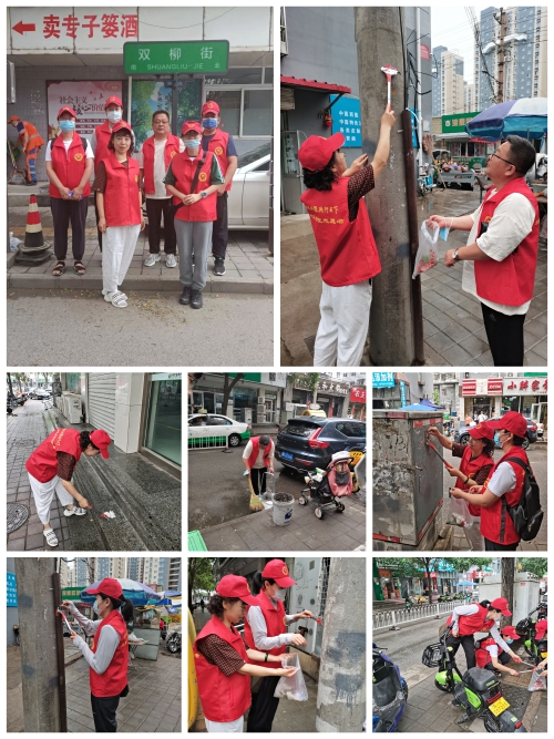 6月21日上午,机关党委吴柏成、岳少博 、马岩、杨希、马斯哲、杨阳、王磊、张泓波、刘淼、张亚超、范萌、祁超在双柳街开展志愿服务
