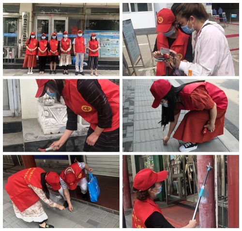 6月22日上午,临床学院张宝川、张伟、周腾飞,工会、离退休管理处石艳华、戴杰、杨莹在双柳街志愿服务