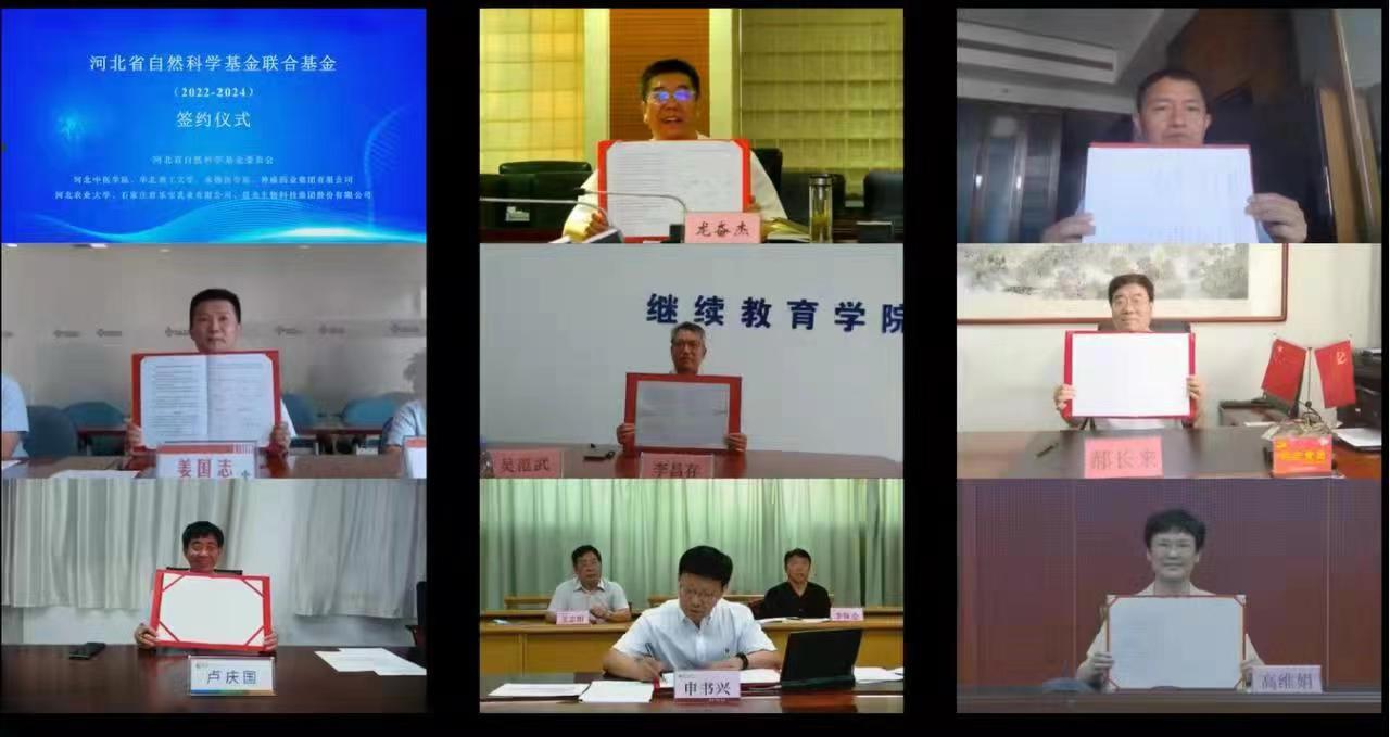2022年7月20日,河北省自然科学基金中医药联合基金项目正式签约。我校党委常委、副校长郝长来出席线上签约仪式并讲话。签约仪式由河北省科学技术厅副厅长张永强主持,河北省科技厅厅长龙奋杰、河北中医学院校长高维娟、华北理工大学副校长李昌存、神威药业副总姜国志等领导参加签约仪式。