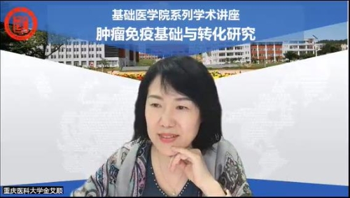 侯志平向与会专家表示欢迎并予以诚挚感谢,对基础医学院科研情况进行简单介绍。郑华川向参会师生介绍重庆医科大学基础医学院微生物与免疫学系主任、免疫教研室主任、肿瘤免疫基础与转化研究重庆市重点实验室主任、重庆医科大学博士生导师:本次活动的讲座专家金艾顺教授。金艾顺曾留学日本攻读东京医科齿科大学分子肿瘤学并获得博士学位,长期从事抗体药物和抗肿瘤T细胞免疫治疗等相关免疫学技术开发,相关研究成果发表于Nature Medicine等系列高水平学术杂志上。2017年被重庆市以高层次人才引进,聘为巴渝学者特聘教授,获得重庆市学科学术带头人、重庆市第一届英才计划创新领军人才、2021年重庆十大科技创新年度人物。