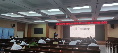 为深入学习贯彻全国研究生教育会议精神和研究生导师立德树人职责,进一步加强我校研究生导师队伍建设,增强研究生导师教书育人的责任感与使命感,王瑞婷在走访医院的同时为医院硕士研究生导师进行了系统培训。王瑞婷围绕着导师是研究生培养的第一责任人、国内临床医学专硕研究生培养概况、研究生培养过程关键阶段以及学位论文盲审常见问题等四个方面展开培训,为进一步强化我校导师育人能力提升起到了推进作用。