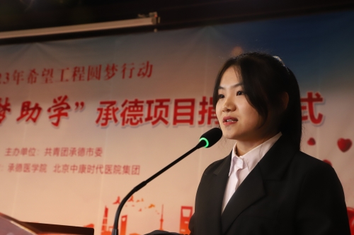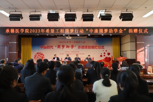 2023年11月16日下午,2023年希望工程圆梦行动“中康圆梦助学金”捐赠仪式在我校图书馆多功能厅举行。我校党委常委、副校长翟玉建,北京中康时代医院投资集团董事长唐细忠、共青团承德市委副书记胡德双出席活动,北京中康时代医院集团各部门领导和各医院负责人、我校学生处、团委和相关院系领导、老师以及受助学生参加了捐赠仪式。