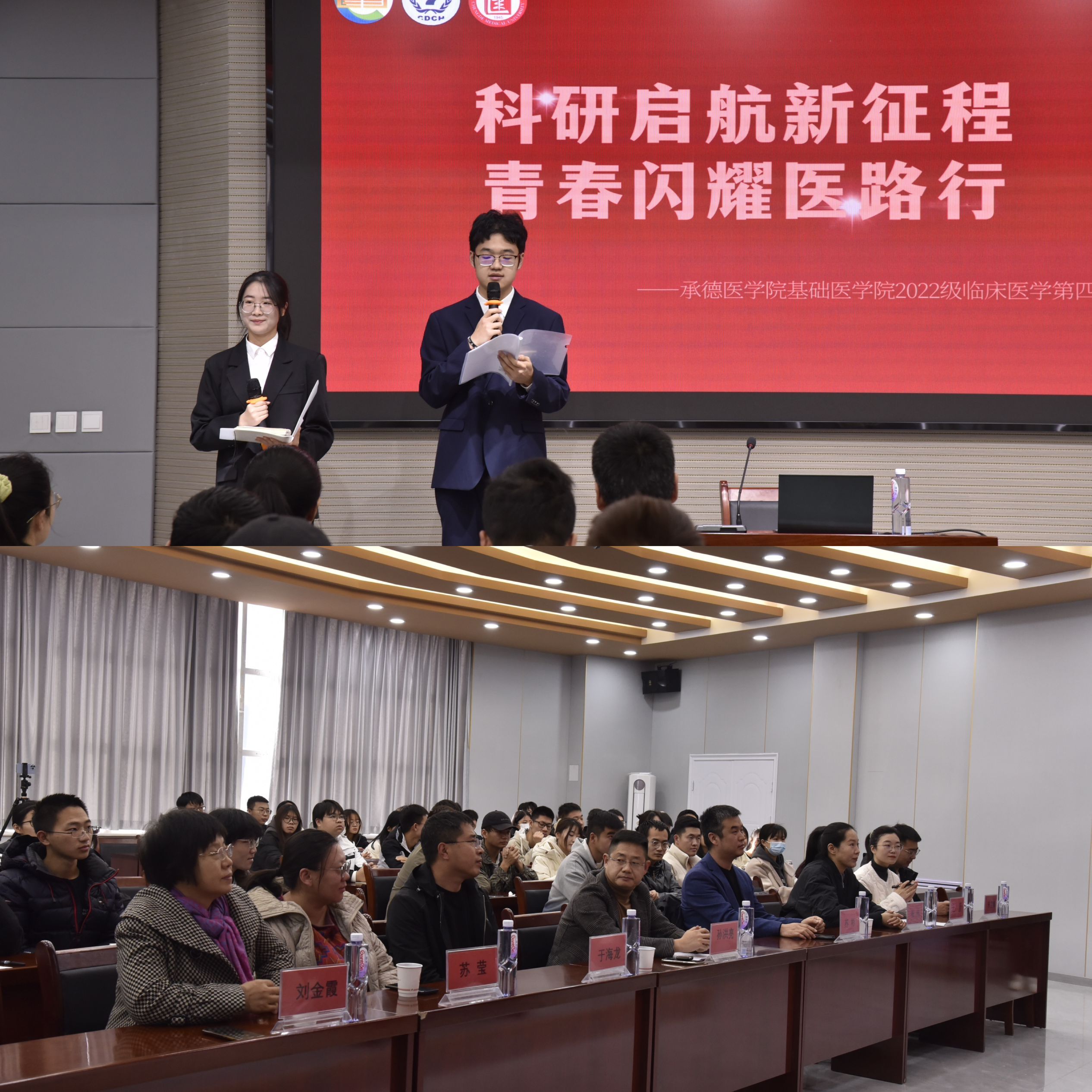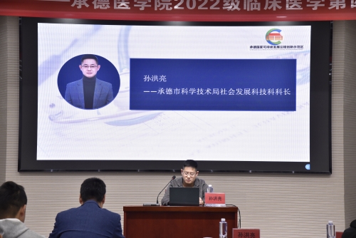孙洪亮从国家层面对科技创新和医疗卫生工作展开论述。鼓励全体承医学子科技创新,并着重强调了科研诚信的重要性。以范仲淹的名句“不为良相,便为良医”为结束语,以此祝全体承医学子学有所成。