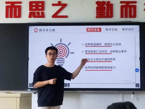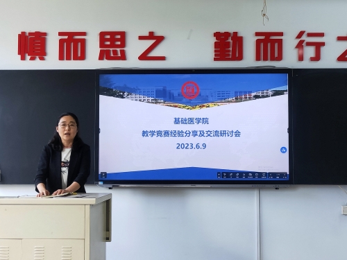 围绕立德树人根本任务,为进一步提高教师的教学能力和竞赛水平,充分发挥大赛的示范引领作用,全面推进课程思政建设,搭建以赛促学、以赛促教的交流学习平台。基础医学院于2023年6月9日,举办教师教学竞赛经验分享与交流研讨会,邀请吴雪艳、郭慧芳、赵学荣、刘铭、陈程五位省赛教师,为本年度教学创新大赛、青教赛及课程思政教学竞赛做好动员及准备工作。
