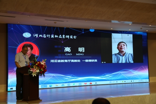 高明致辞,他充分肯定了研究会的工作及在河北省计算机教育中的重要作用,他强调要以习近平总书记视察雄安新区的重要讲话精神为指引,推动河北省计算机教育的改革与发展,加强理论探索、产教融合和实践,为建设经济强省、美丽河北做出应有的努力和贡献。