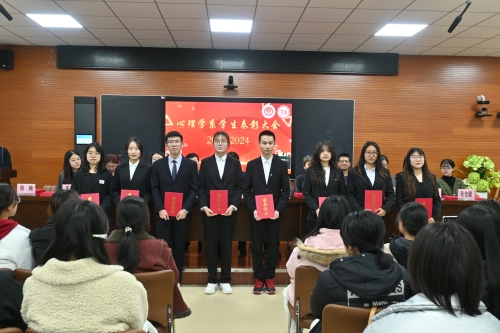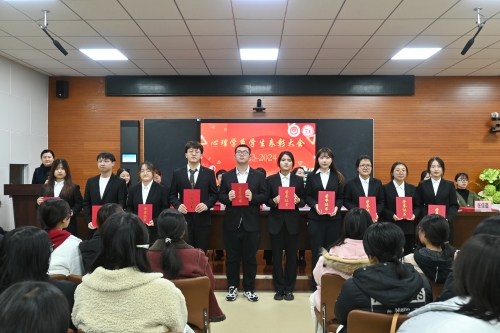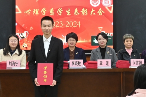为进一步贯彻落实立德树人根本任务,全面总结一年来学生服务管理工作成效,心理学系于2024年11月13日下午在护理心理楼五楼实训室隆重举行心理学系2023—2024学年学生表彰大会。心理学系全体师生参加,心理学系辅导员柳楠主持会议。