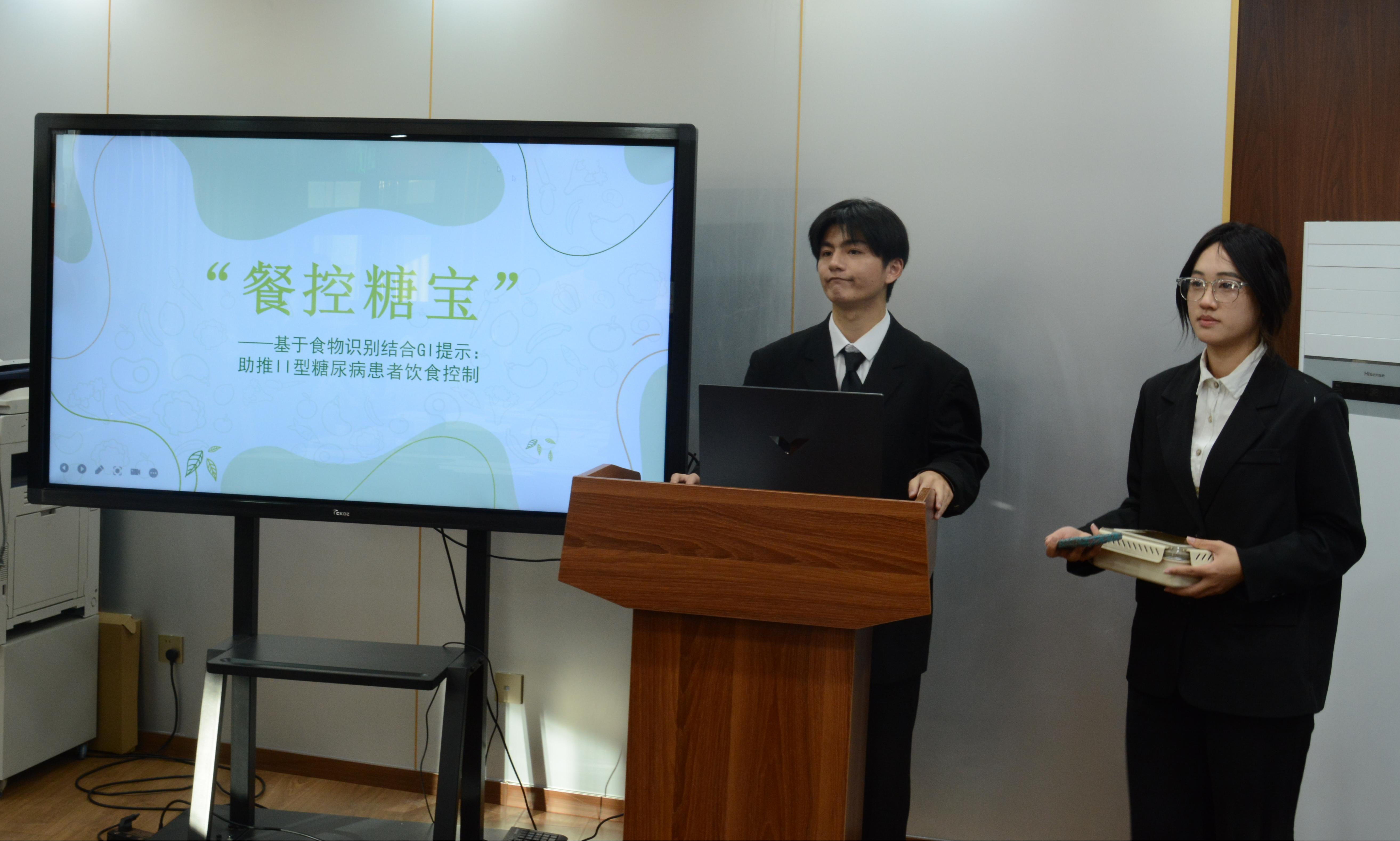 本次比赛14支参赛队伍依次登场,借助精心制作的PPT展开精彩汇报,全面展示团队的创意理念、项目规划等内容。汇报主题紧扣社会生产生活中的热点与痛点问题,充分展示大学生对社会需求的敏锐洞察力与强烈责任感。在提问环节中,评委们凭借深厚的专业知识与丰富的实践经验,对各团队项目进行深入的剖析和点评。评委们围绕创新点是否突出、项目成果如何、所依托的工具和技术是什么等方面,精准指出各项目的不足之处,并提出针对性修正意见。