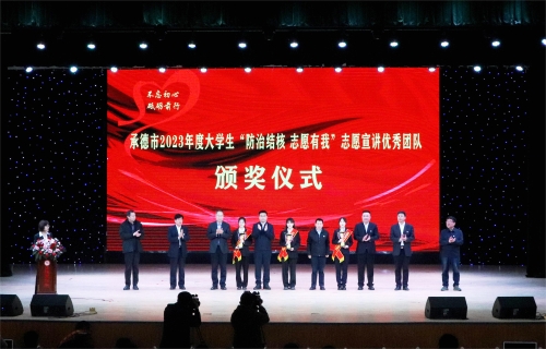 2024年3月24日是第29个“世界防治结核病日”,主题是“你我共同努力 终结结核流行”,旨在深入贯彻党的二十大精神,倡导全社会关注结核病防治,不断提高健康意识,共同终结结核流行。3月24日上午,由河北省卫生健康委员会、河北省教育厅和河北省疾病预防控制局联合主办,河北省疾病预防控制中心、承德市卫生健康委员会(承德市疾病预防控制局)、承德市教育局、共青团承德市委、承德市疾病预防控制中心、双桥区卫健局、双桥区疾病预防控制中心共同承办,河北省防痨协会协办的“河北省第29个世界防治结核日主题宣传活动”汇报演出在我校会堂举行。校长唐世英、学校党委副书记张学良、副校长翟玉建和省、市相关单位各级领导出席此次活动。我校学生代表和在承高校优秀大学生志愿者代表、最美防痨人代表、各级单位、企业结防人代表共同参与活动。
