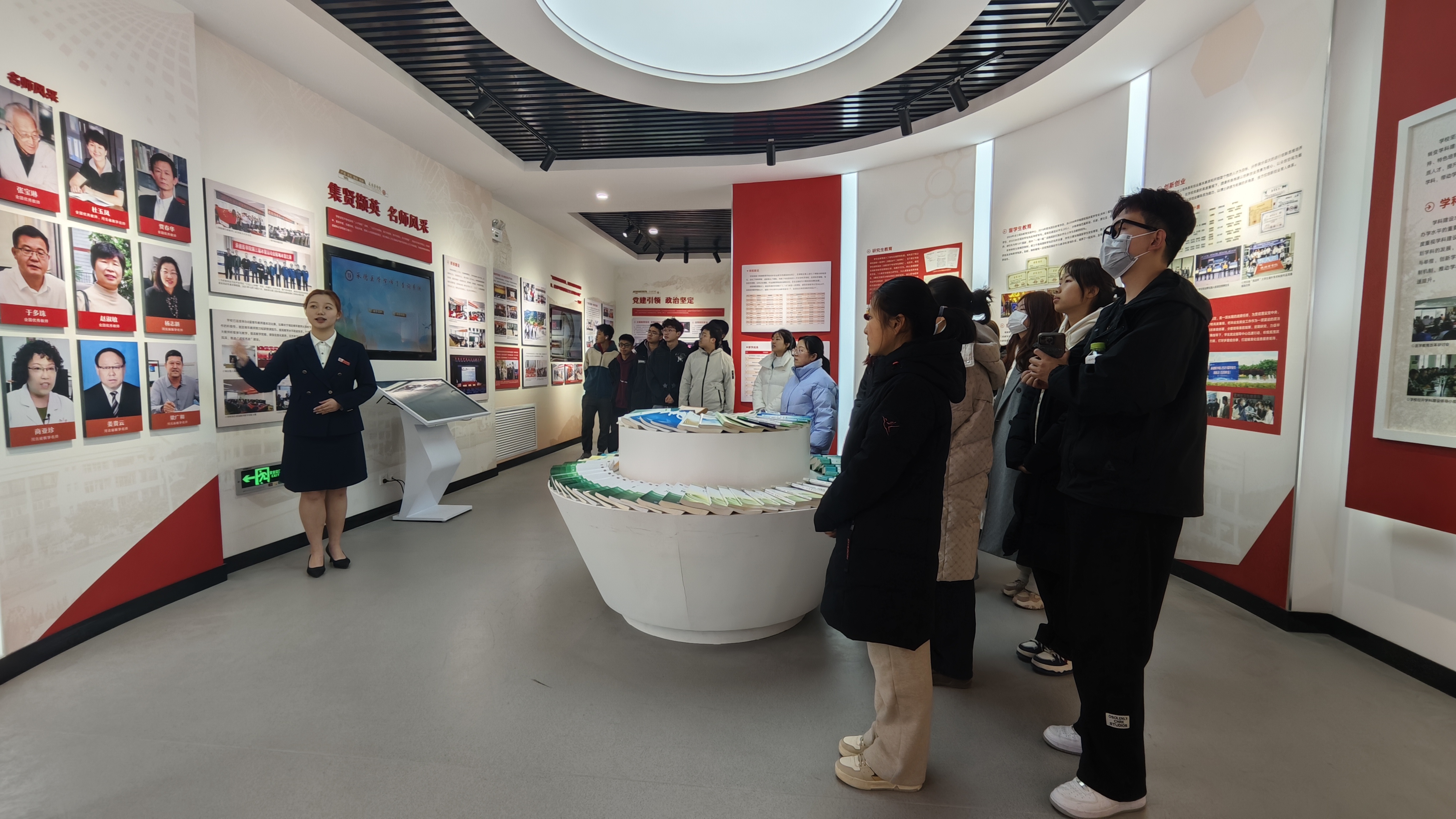 讲解员从“医脉相承传赤心”部分开始讲解,帮助同学们深刻理解“政治坚定、仁爱至诚、敬佑生命、甘于奉献”的承医精神。随后分别从“精医善教育桃李”“德满杏林竞生辉”“医道逐梦谱华章”三部分进行讲解,带领同学们回顾了学校风雨兼程的发展历史和改革发展过程中取得的成就,深刻感悟先辈们艰苦创业、救死扶伤的精神,更好地诠释了“承医精神”和“红医精神”。参观结束,同学们对承德医学院悠久的文化历史、浓厚的教学氛围表示敬佩。
