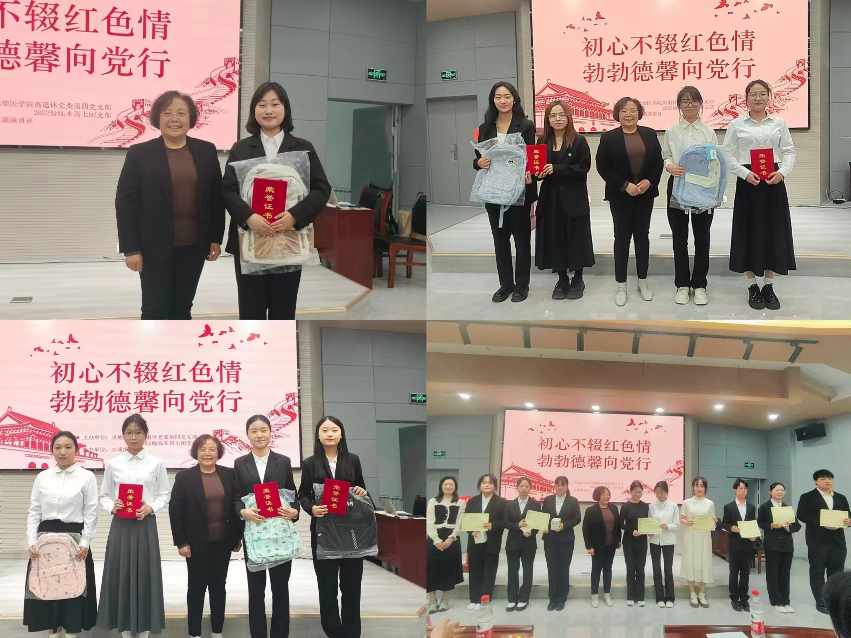 离退休第四党支部联合基础医学院2022级临床医学第七团支部、水滴演讲社于2024年4月27日举办以“初心不辍红色情,勃勃德馨向党行”为主题的演讲比赛决赛。