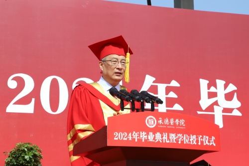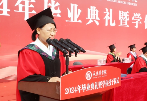 唐世英代表学校党政领导致辞,祝贺2024届毕业生们顺利完成学业,开启崭新篇章。勉励毕业学生,要走正路、行大道,不被浮华所迷惑、不为功利所裹挟。一要树立“须知少时凌云志,曾许人间第一流”的远大理想,把个人理想、和人生同祖国的前途、民族的命运紧密联系在一起,在有益于国家、有益于人民、有益于医疗卫生事业的壮阔征程中,成就人生理想。二要锤炼“人生万事须自为,跬步江山即寥廓”的奋进精神,不要太在意一时之快慢、一事之成败,敢于以坚定者、搏击者的姿态面对困难考验,积小胜为大胜,创造出彩人生。三要永葆“少年易老学难成,一寸光阴不可轻”的勤学之风,要始终牢记“仁爱至诚”、始终践行“知行合一”、始终坚持终身学习,切实做到“无一事不学、无一时不学、无一处不学”。四要涵养“不经历风雨,怎能见彩虹”的坚毅品格,敢于用极强的韧性与勇气抵御风险,攻坚克难。