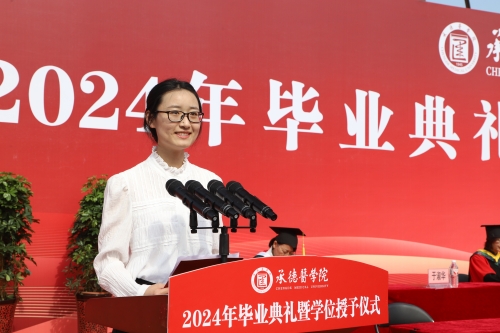 2020级麻醉学专业张智代表在校学生为即将毕业的同学们送去祝福。他说,是学长学姐们的言传身教,潜移默化,做出了表率,树立了榜样,将会继续薪火相传,坚持朋辈引领,传承红色基因,用青春热血继续谱写承医新的辉煌。