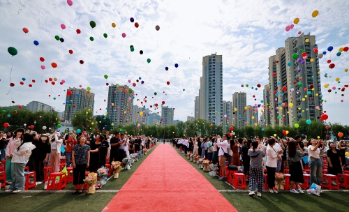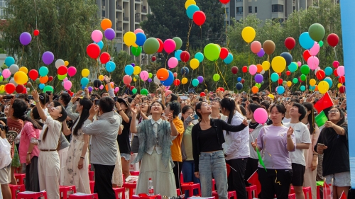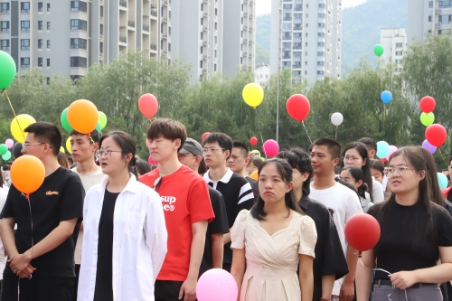 全体毕业生放飞手中的五彩气球