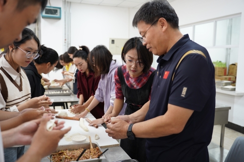“月圆人聚共欢乐,饺香情满庆团圆”。在这个充满诗意与温情的节日里,翟玉建与同学们围坐一圈,亲自示范并耐心指导同学们包饺子的步骤和方法。同学们积极参与,分工明确,齐心协力完成了饺子的制作。同时,翟玉建问起同学们的大学生活及未来规划,并畅谈中秋节的起源与文化内涵。