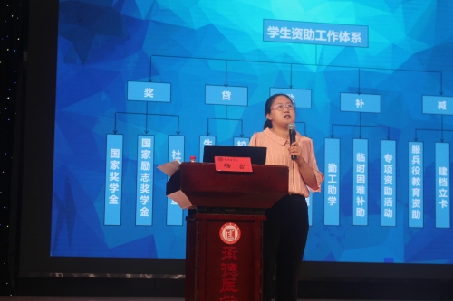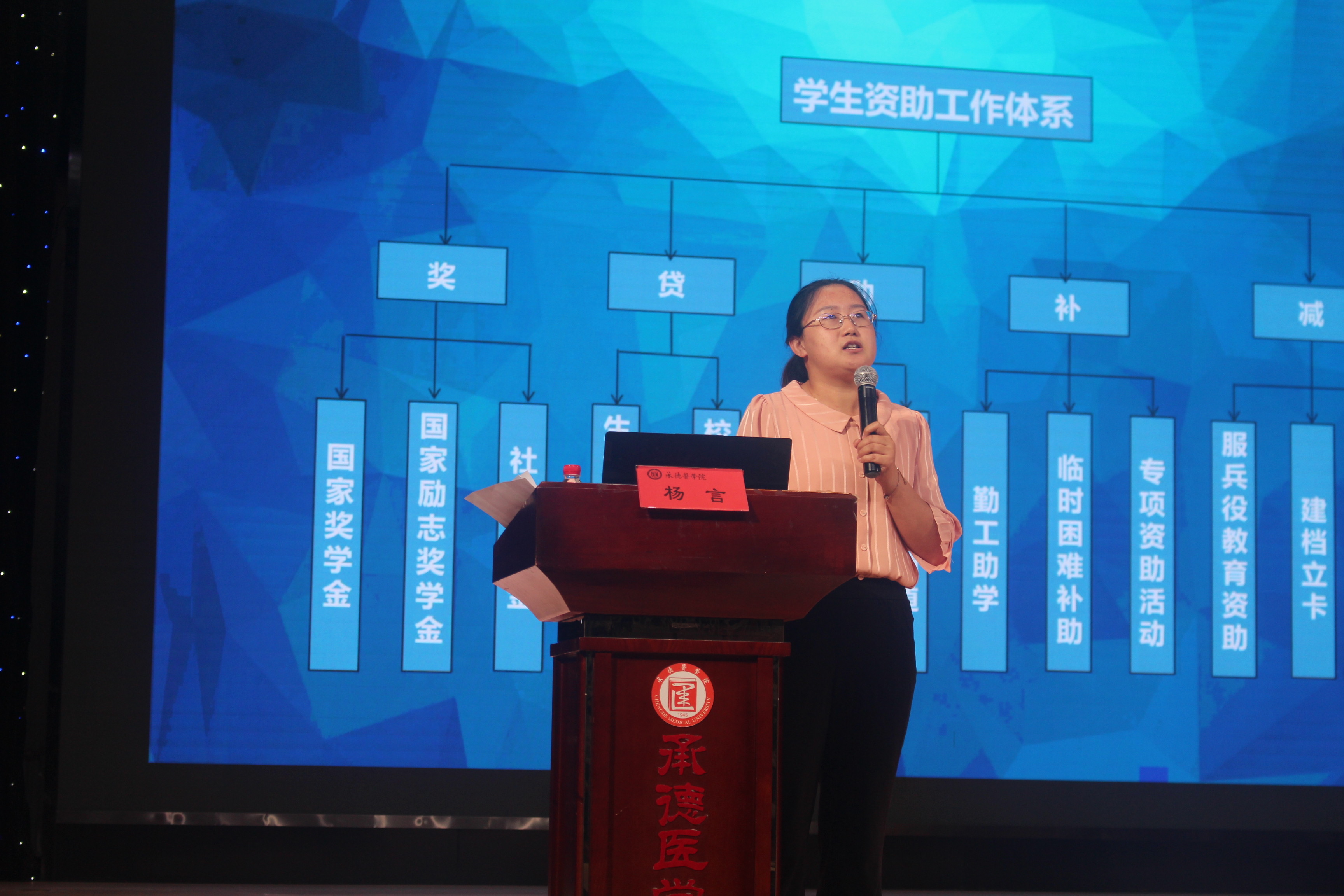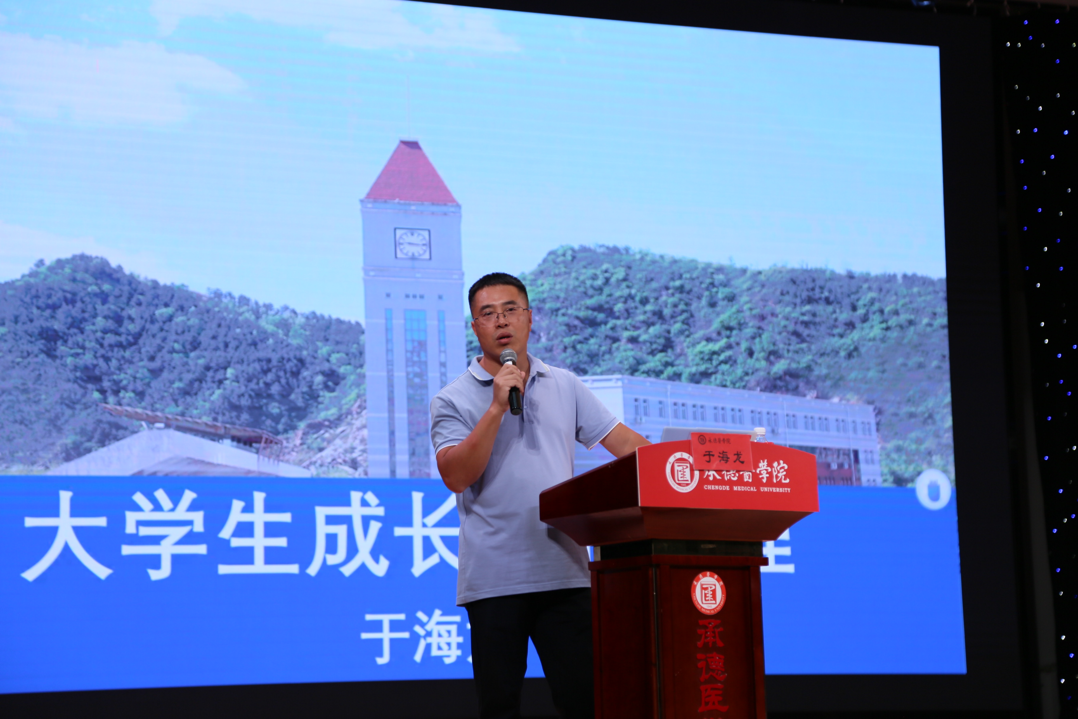 新学期启新程,新赛道扬新帆。9月7日晚上,学生处处长张文军以及学生资助中心副主任杨言为新生展开入学教育。张文军以《新阶段,新赛道,新征程》为主题,分别从我的大学、大学的我、成长的建议三个角度开展讲座。勉励新生要在未来的成长中促进知识、素养、能力全方面进步,学习做人、做事、做学问。在自身方面,要深入挖掘自身潜力,树立自主观念,调试自我心态,了解自己,做自己的主人,以积极的态度面对学习与生活。在人际交往方面,要严于律己,宽以待人,学会尊重包容他人,学会换位思考,树立和谐的人际关系。最后,张文军以承德医学院办学理念为总结,勉励新生做到“仁爱至诚,知行合一”,努力成为一名卓越医师。杨言讲解了我校学生资助管理政策,从奖、贷、助、补、减多个方面向学生介绍我校的相关政策,传达了每一位学生不因家庭经济困难而失学的理念。又细致讲解了获得国家奖学金与国家励志奖学金的要求,激励新生学子奋力拼搏、追求卓越。